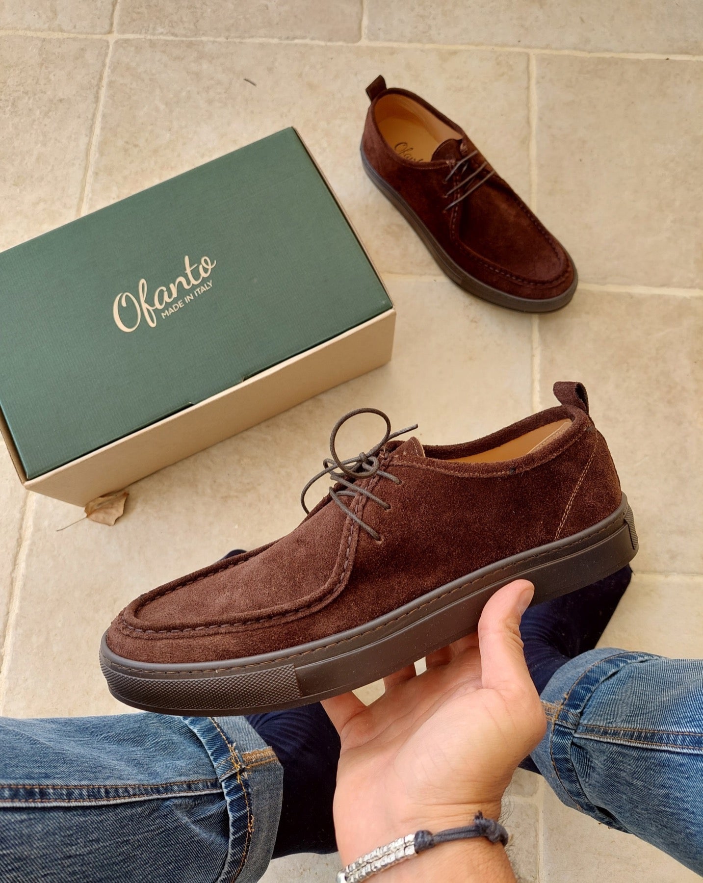- Tomaia esterna: Vera pelle di vitello Italiana Scamosciata