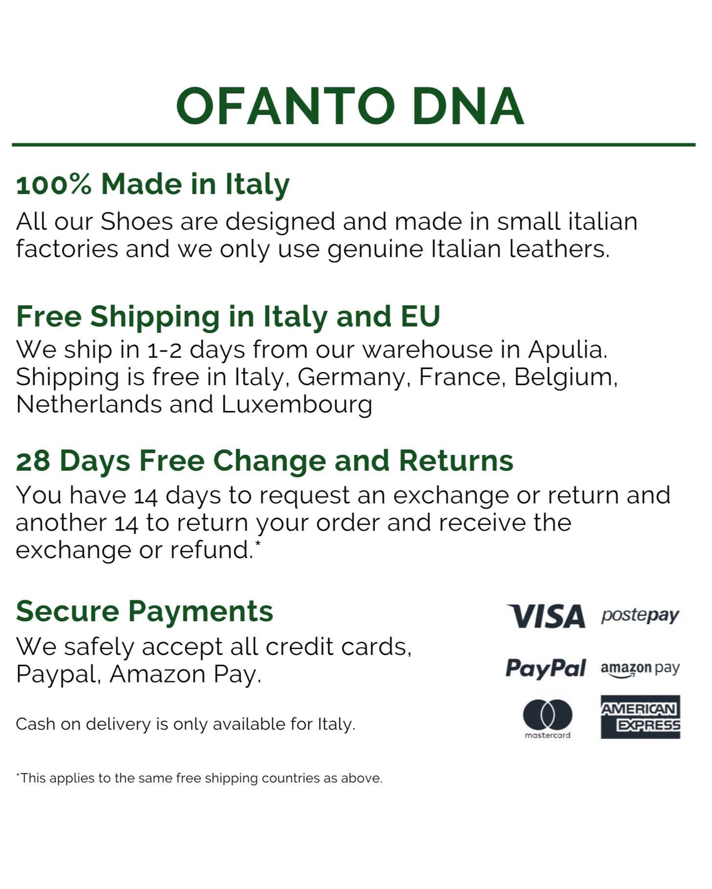 Le Manarola, come tutta la nostra collezione, son fatte qui in Italia utilizzando dell'ottima pelle Italiana ed una suola in gomma sintetica che vi proteggerà dalle intemperie della stagione più rigida.