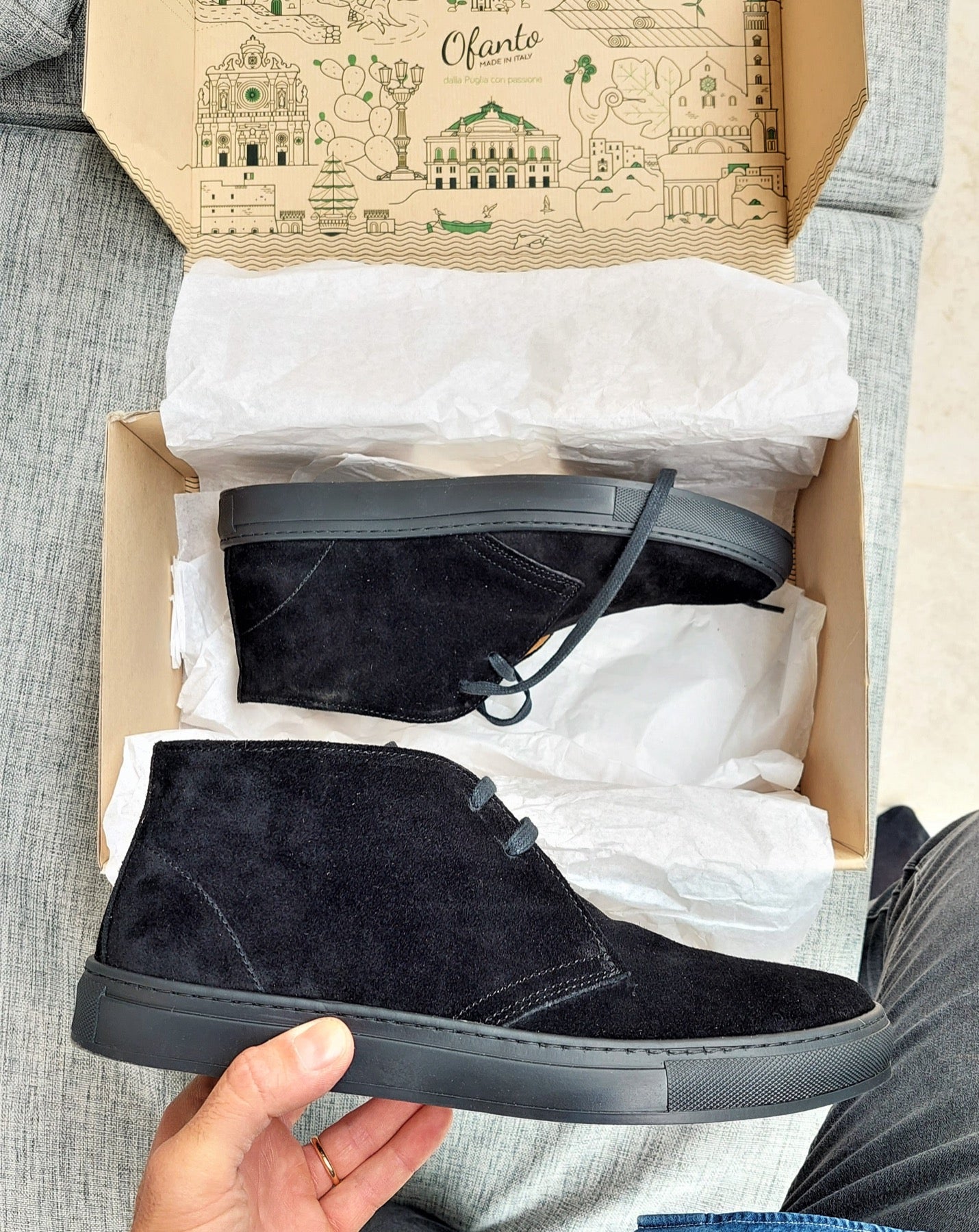 - Tomaia esterna: Vera pelle Italiana scamosciata