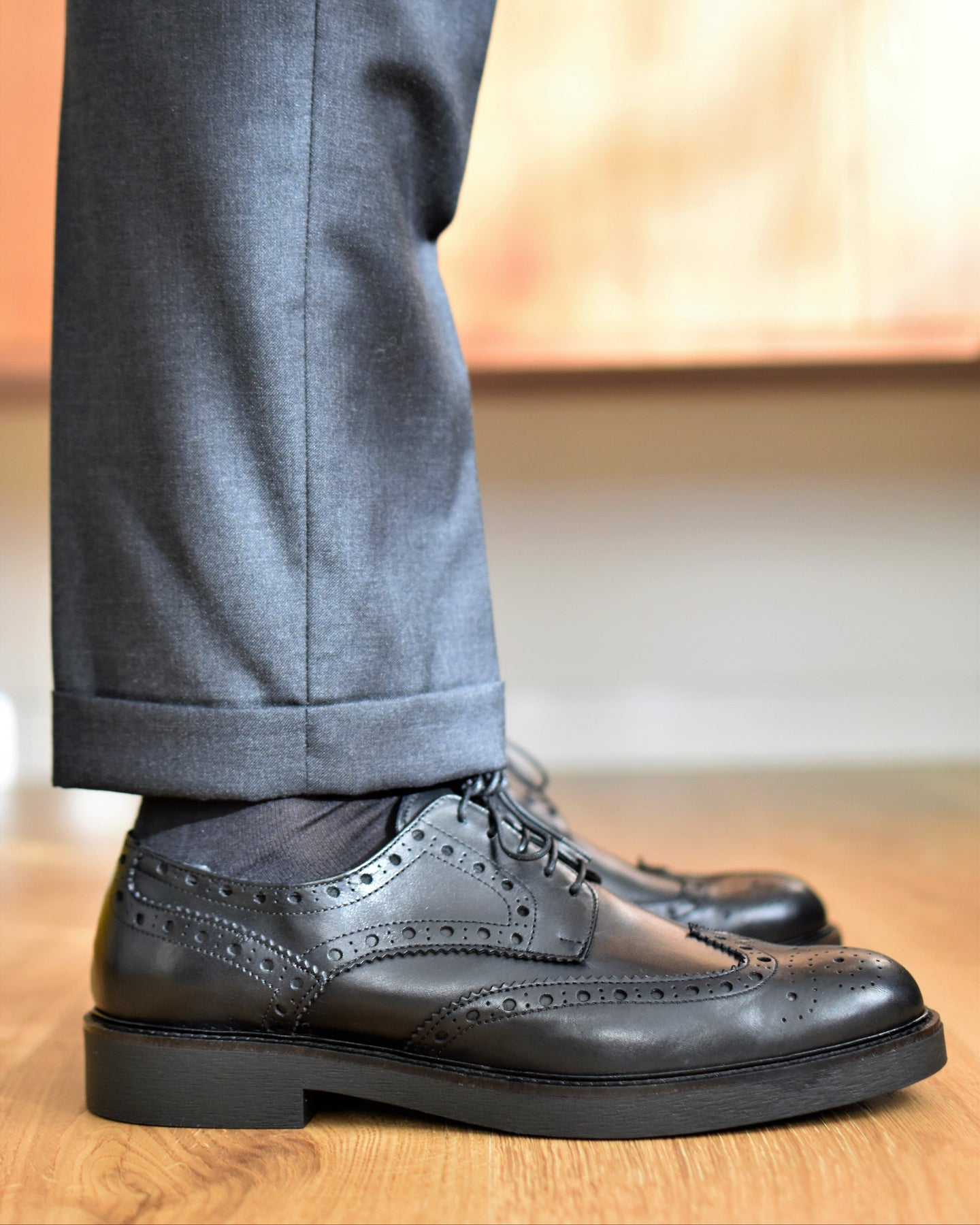 Il risultato è una stringata Derby dal gusto classico che grazie alla suola in gomma, fatta totalmente in Italia, assume un tocco di modernità e acquista anche tanta ma tanta comodità.