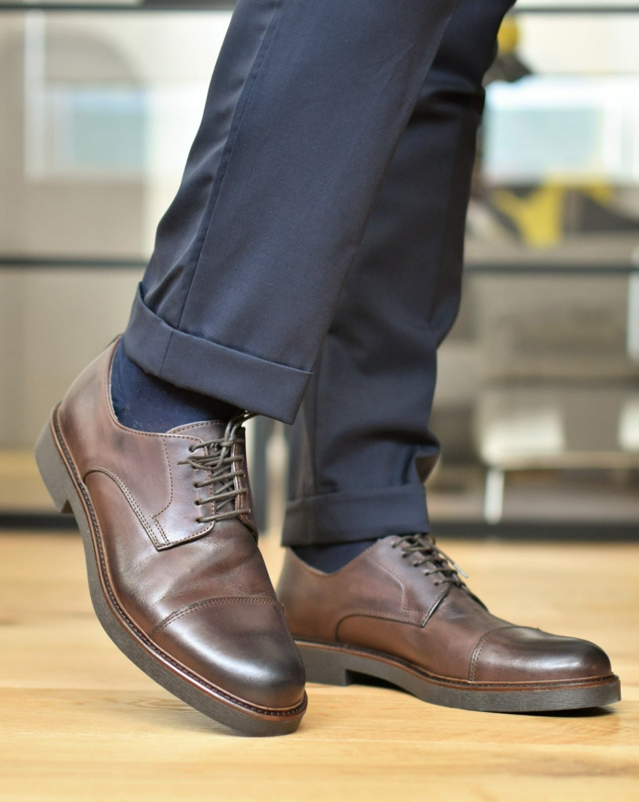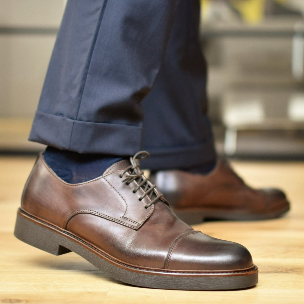 Voghera è il nome delle nostre derby cap-toe realizzate con un'ottima pelle spazzolata italiana ed una stupenda suola in gomma molto robusta, comoda e leggera.