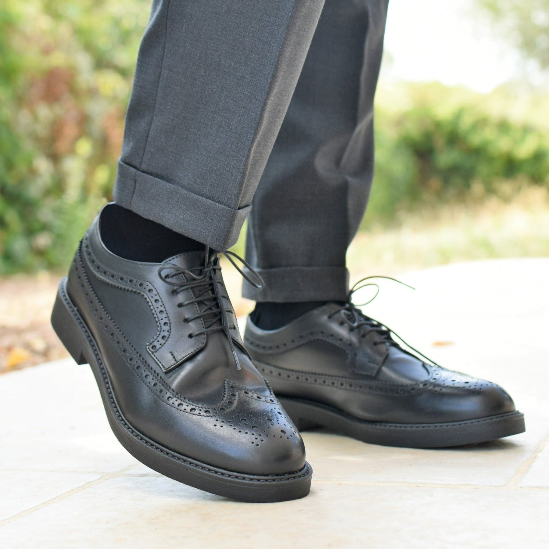 Sono caratterizzate dal disegno Brogue a coda lunga che arriva fino al tallone donandole slancio ed altissima eleganza strizzando però un'occhietto alla sportività.