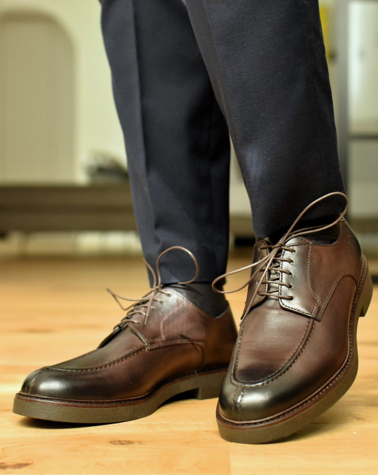 Con le Vomero, ci siamo ispirati all'essenza del quartiere omonimo: un mix di tradizione e modernità. Come le strade che uniscono antico e contemporaneo, queste scarpe combinano il classico stile derby con un tocco di innovazione.
